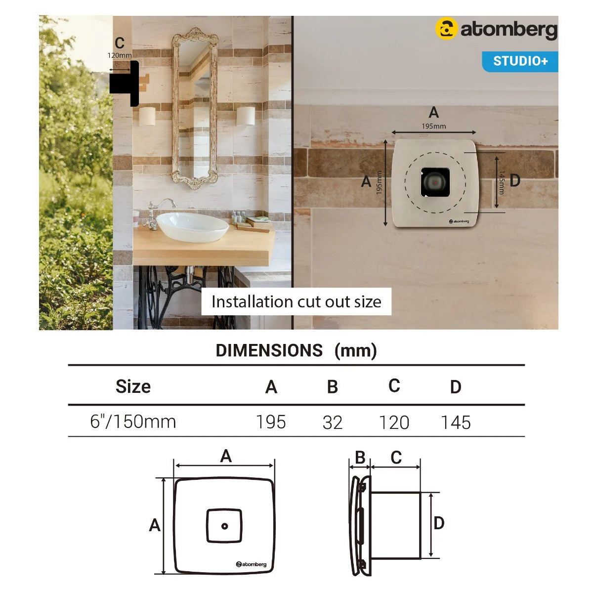 Atomberg Studio + BLDC Exhaust Fan 150mm White